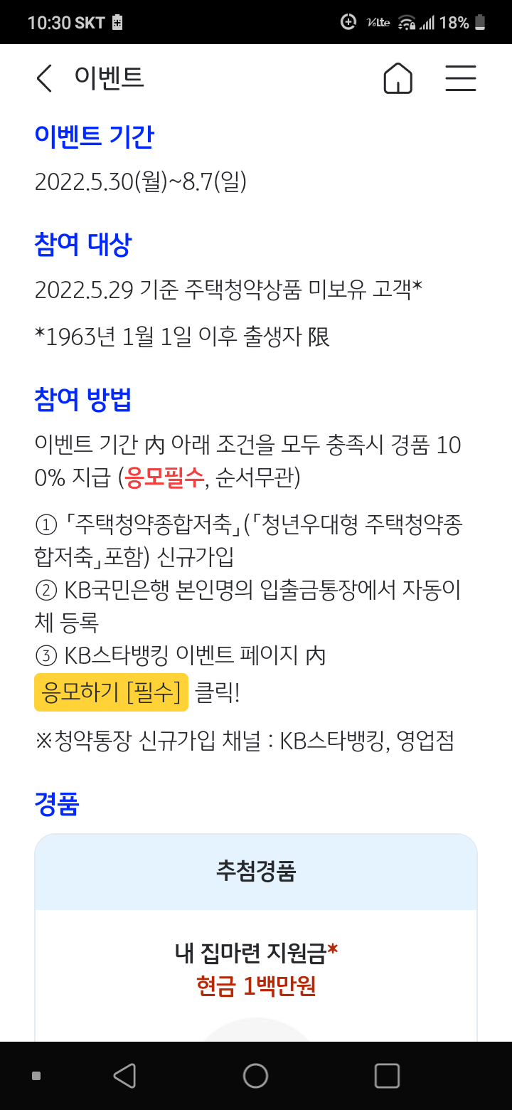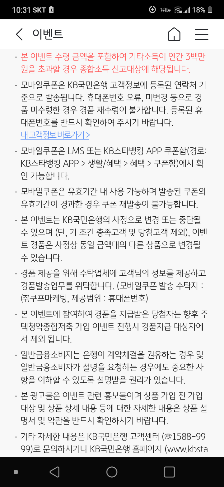 KB스타뱅킹 앱에 접속하니 이벤트 팝업이 뜨더라.