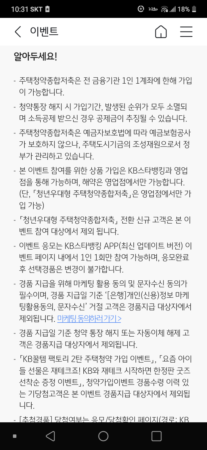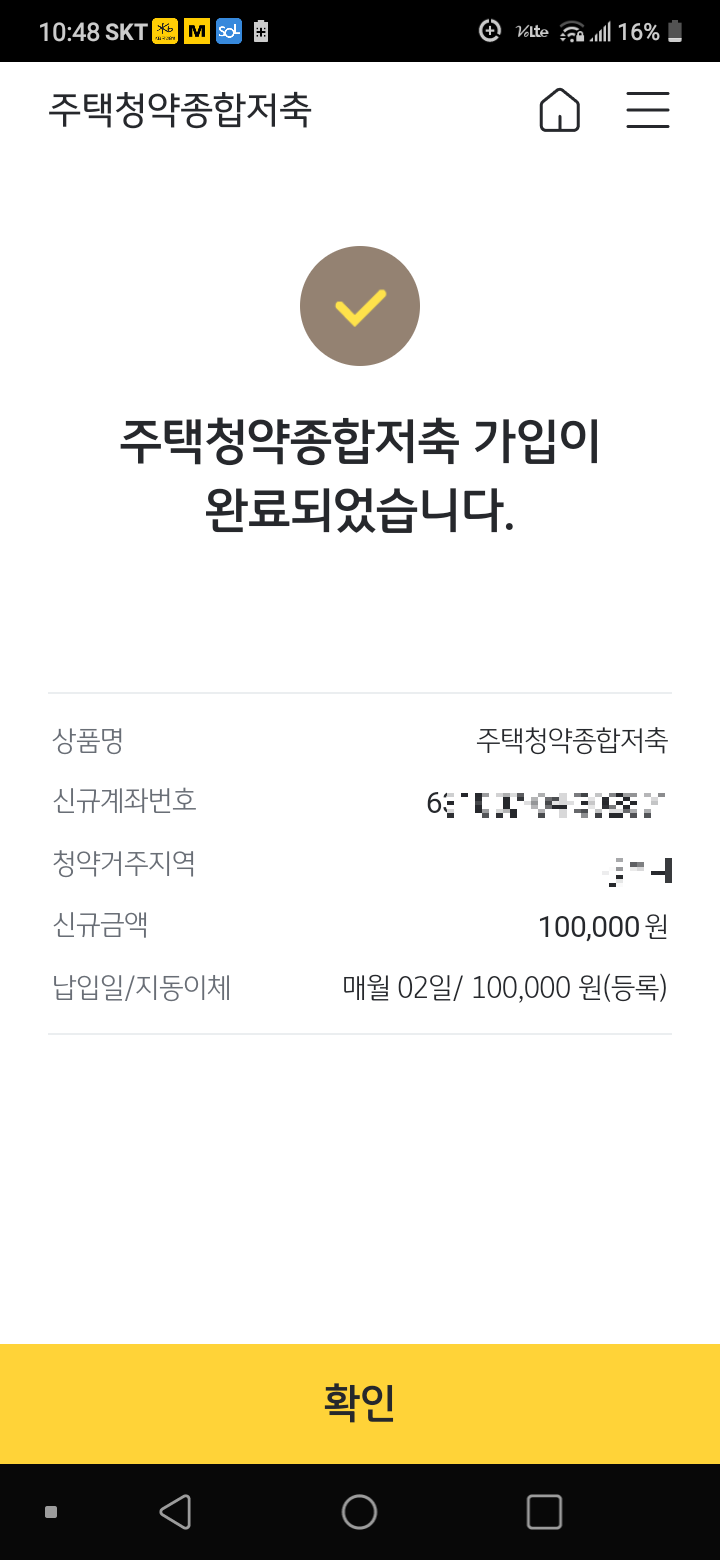 청약할 일이 있을런지는 모르겠는데 신용카드 발급 받을 때 청약통장이 있으면 좋을 것 같아서 하나 만들어 둠.