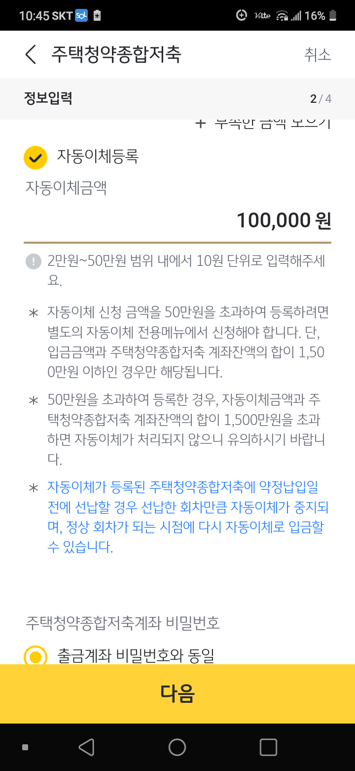 월 10만원 x 매월 2일 자동이체