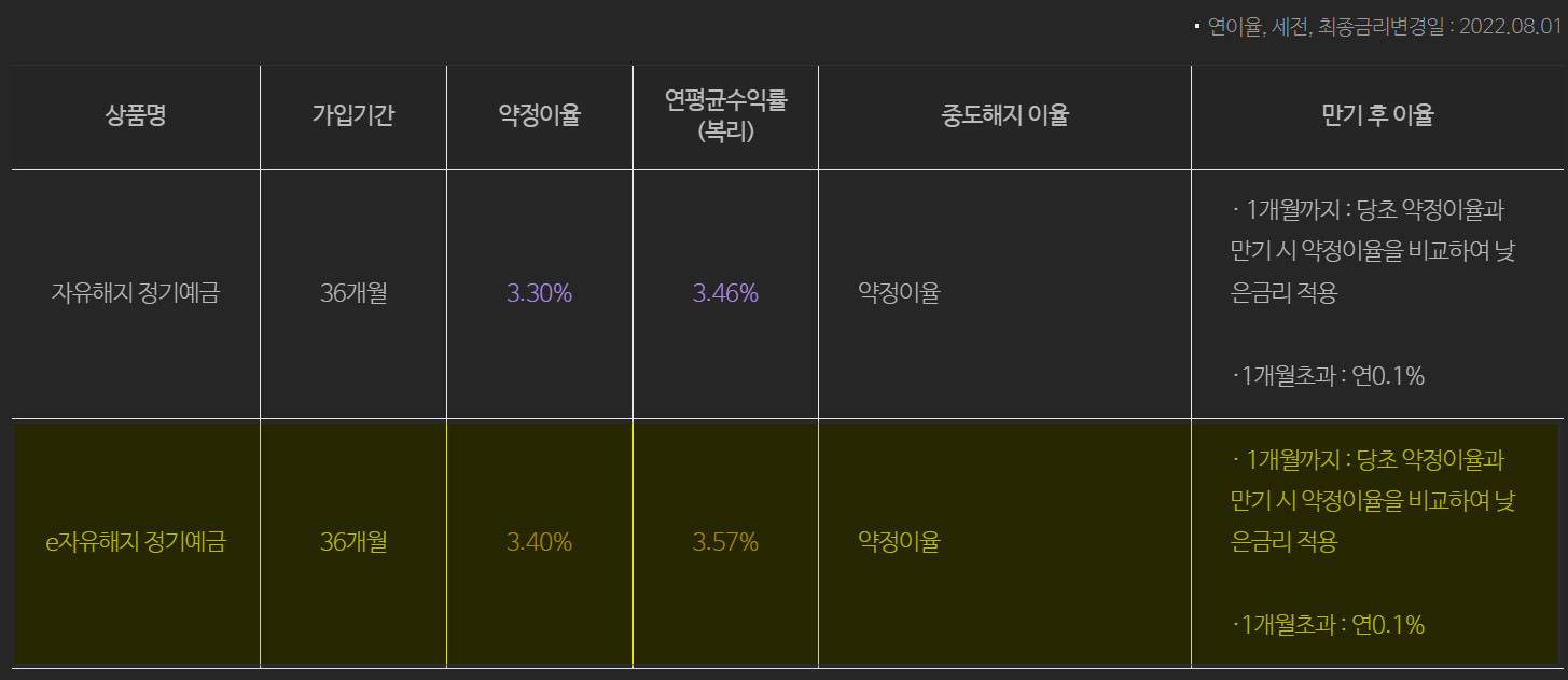 e자유해지 정기예금