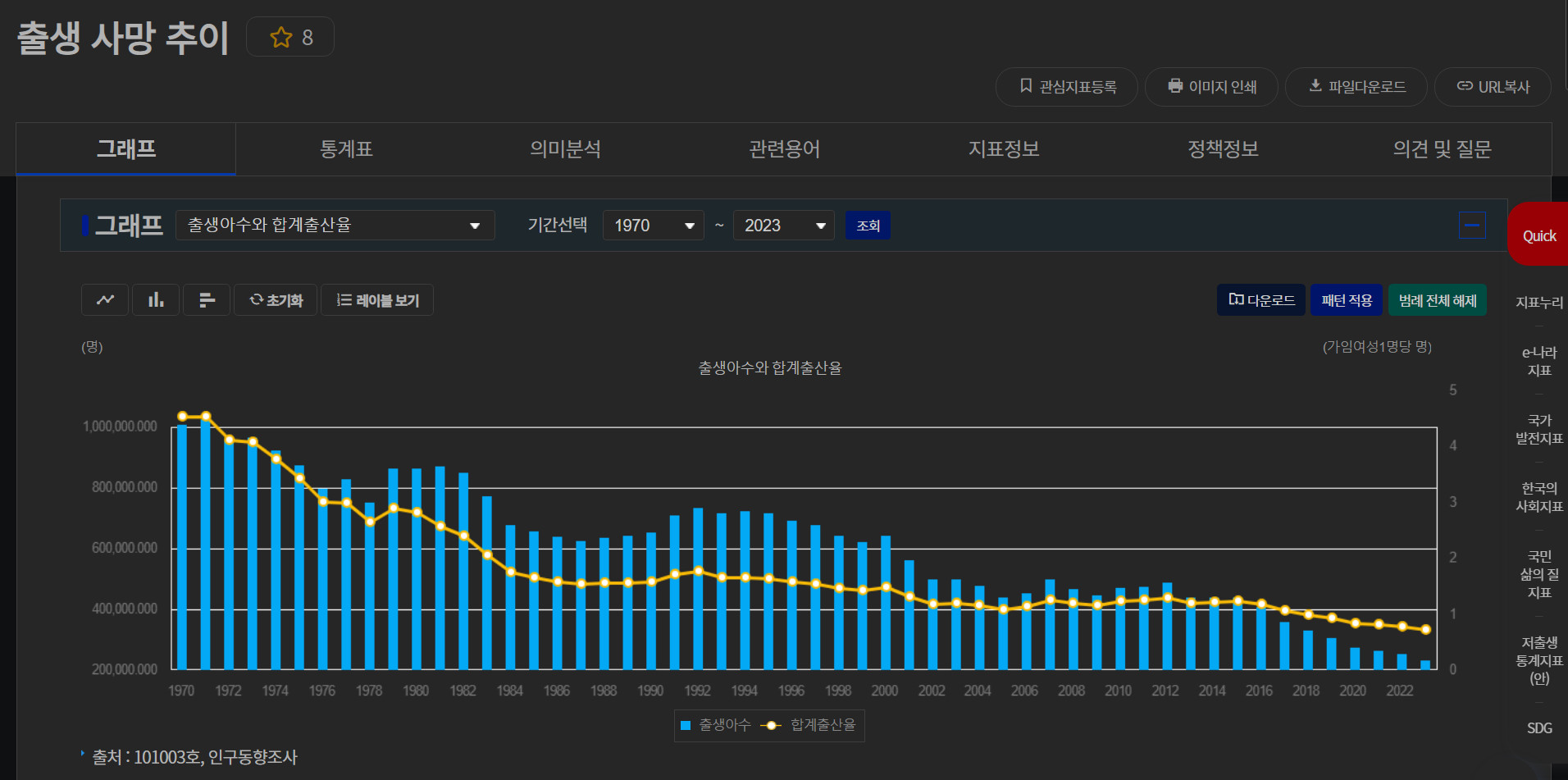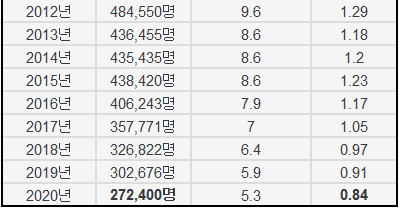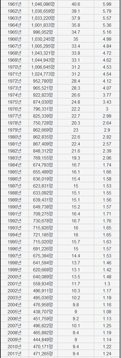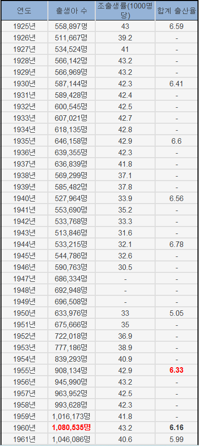 위 표에서 1925년생 이후 꾸준하게 50만명 이상은 태어났는데 왜 35만명 밖에 안 될까 싶더라.