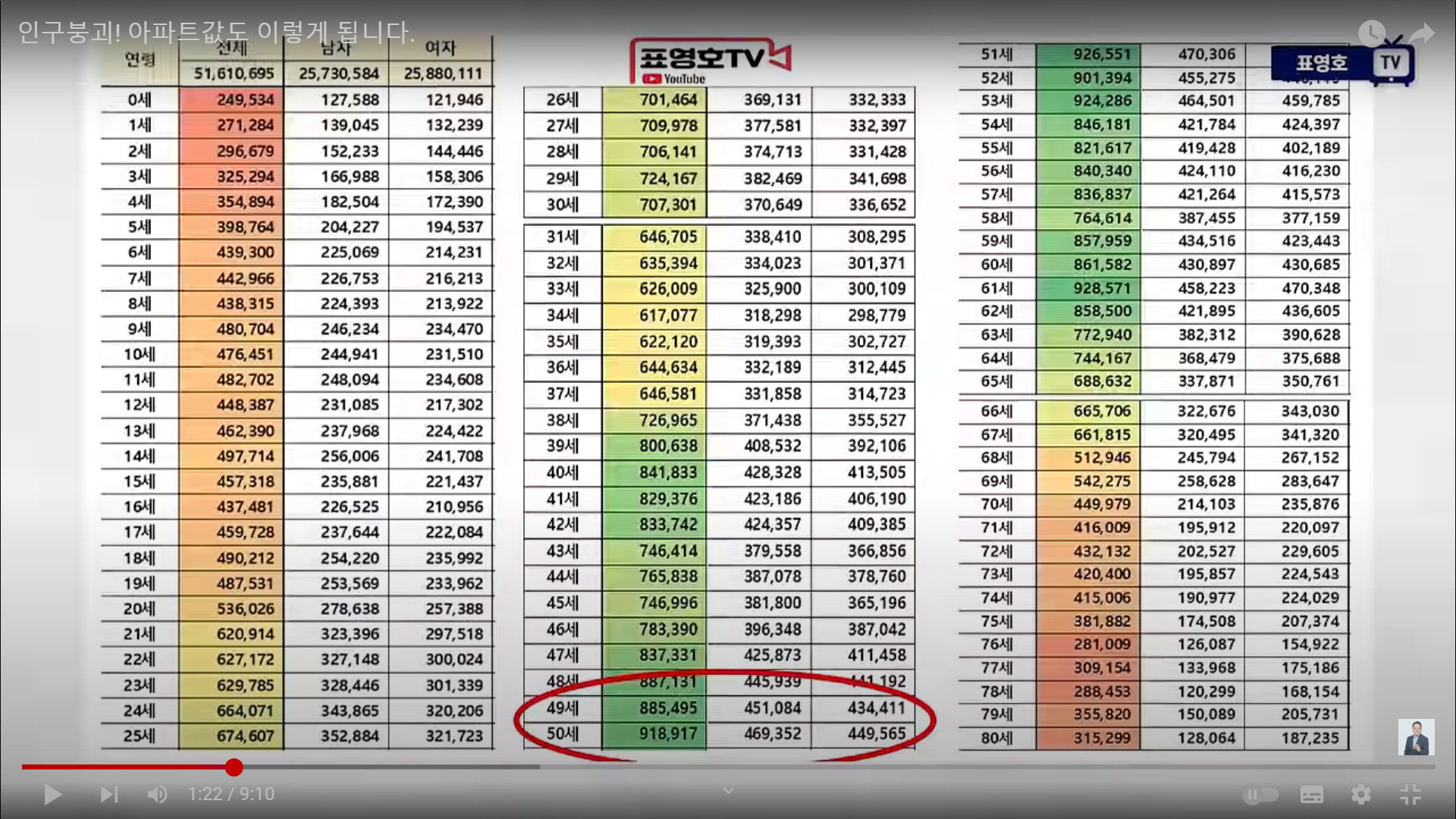 그렇다면 휴전협정 (1953년) 이전 세대들은 위 표에서 나와있는 출생아수에 비해 생존해 있는 인구가 많이 적지 않을까...
