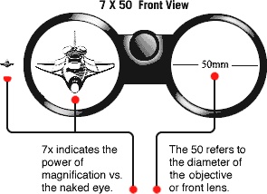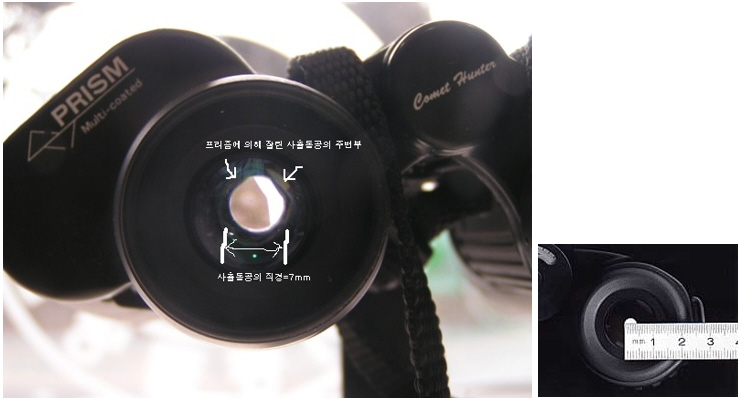 사진 1 : 7*50 쌍안경을 앞에서 본 그림.