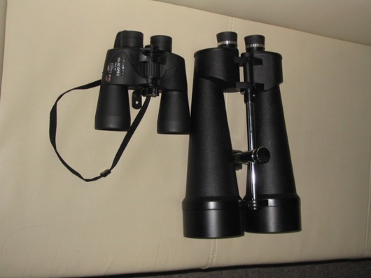 사진 9. 셀레스트론 skymaster 25*100(우)와 비노홀더 장착된 올림푸스 DPS R 10*50 의 크기 비교(박병천님 작)