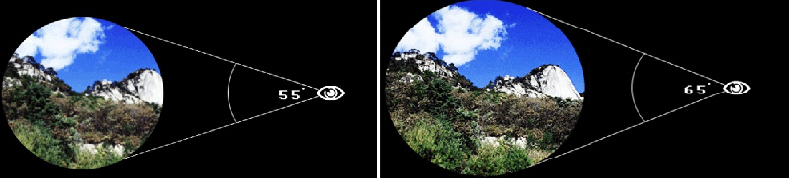사진 12. 동일배율(예 10배)에서의 일반적인 시야와 광각(wide angle) 쌍안경의 시야