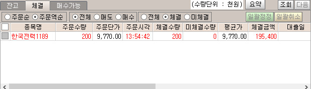 한국전력1207 / 9710원에 1016개 / 세후 4.68%