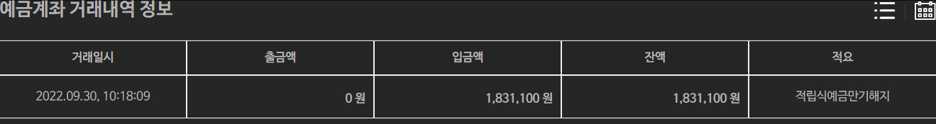 | [2022.09.27] 정기예금 부분해지 : -1,000만원 (우리금융저축은행, 더마니드림 e-정기예금) (0) | 2022.09.27 |