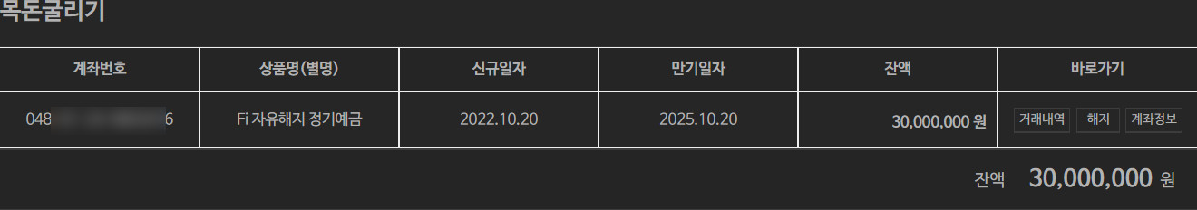 1천만원 정도는 파킹통장에 넣고, 남은 3천만원은 자유해지 정기예금에 넣어 뒀음