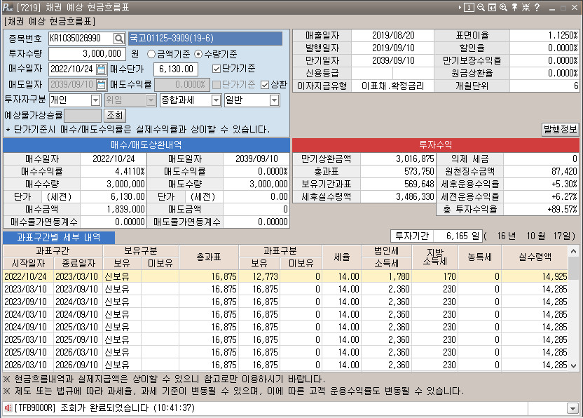 `국고01125-3909(19-6)` 채권 이름 해석
