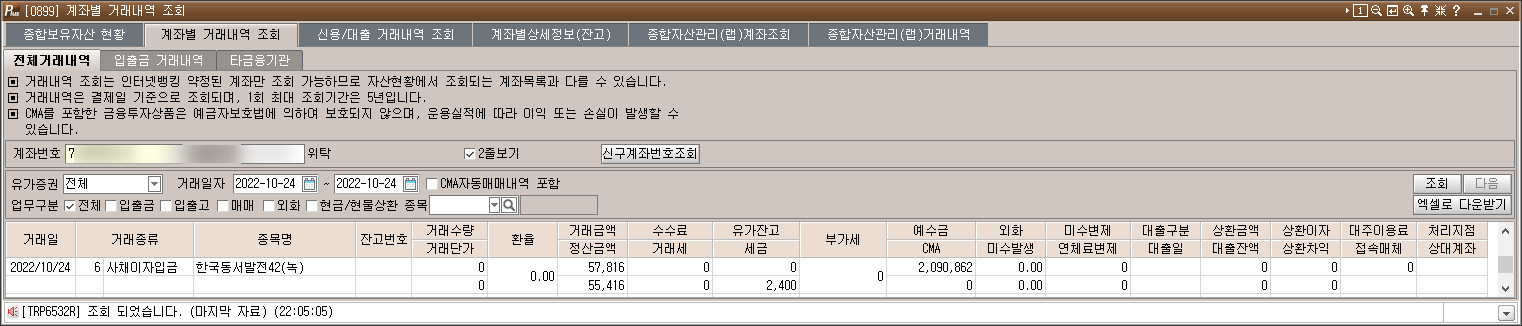 | [2022.10.19] 장내채권 매수 : 우리금융지주3 x AAA x 681일 x 세후수익율 5.16%, 서울도시철도22-05 x 2,416일 x 세후수익율 5.1% (2) | 2022.10.19 |