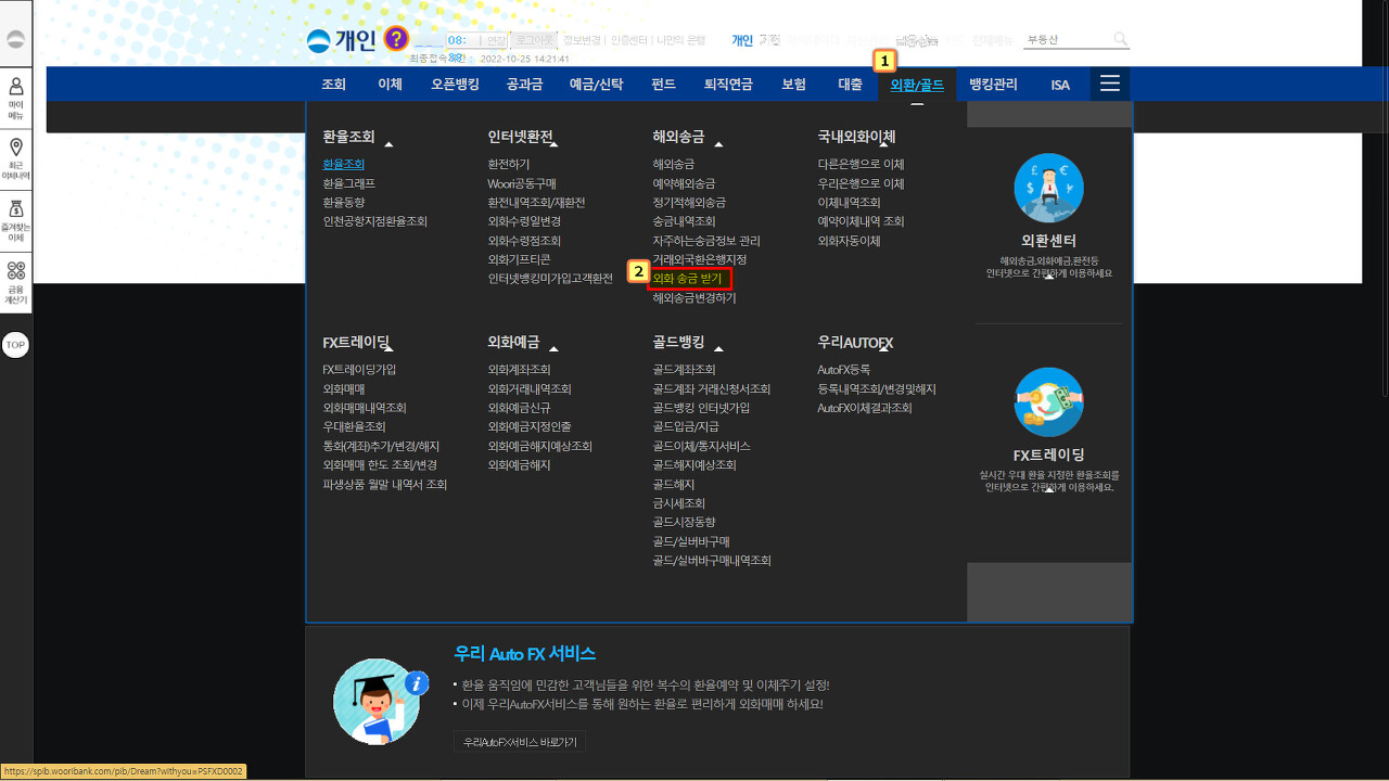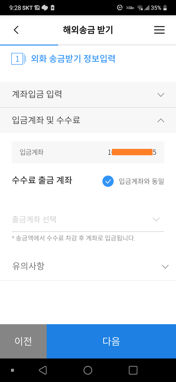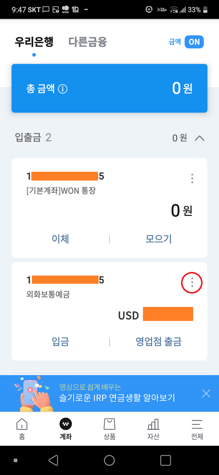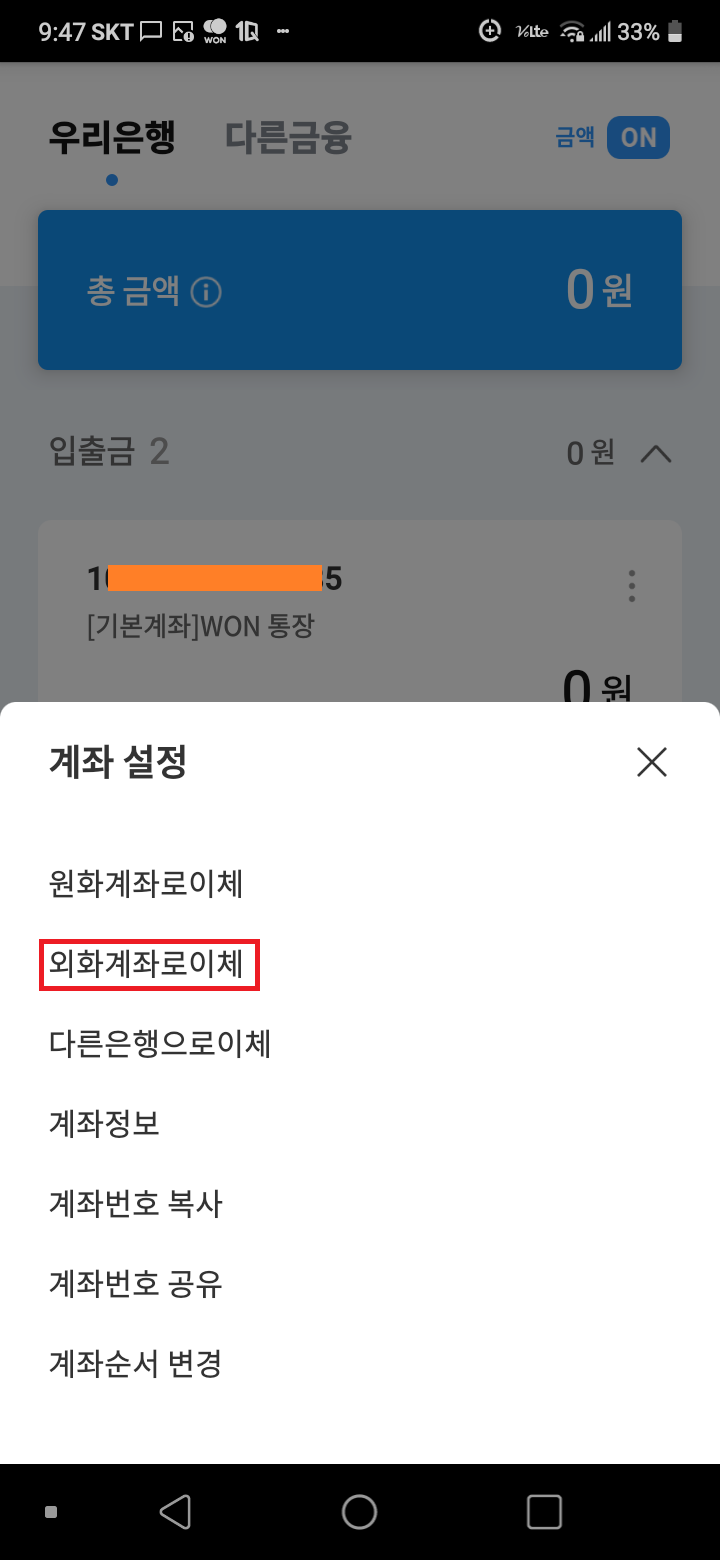 우리은행 외화통장의 달러 삼성증권으로 이체시키기