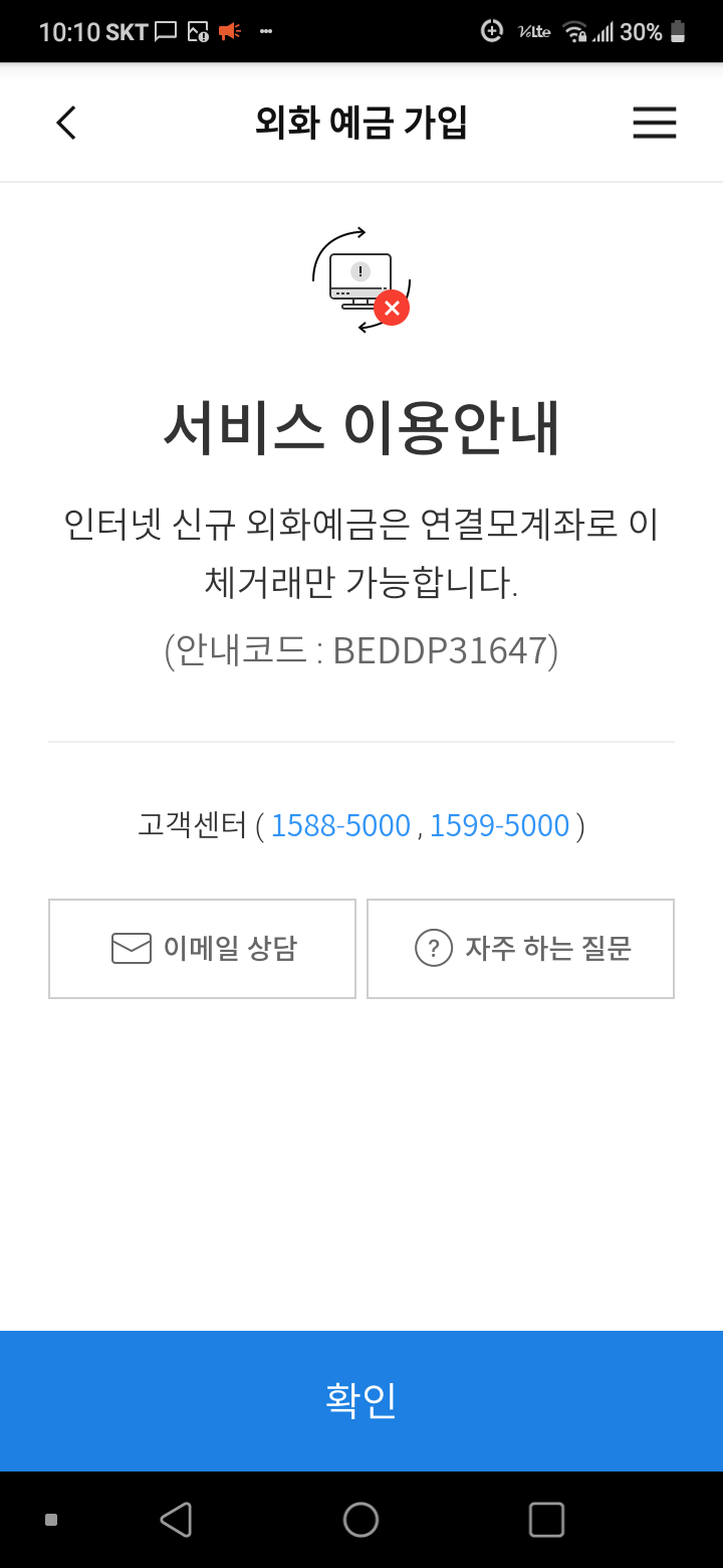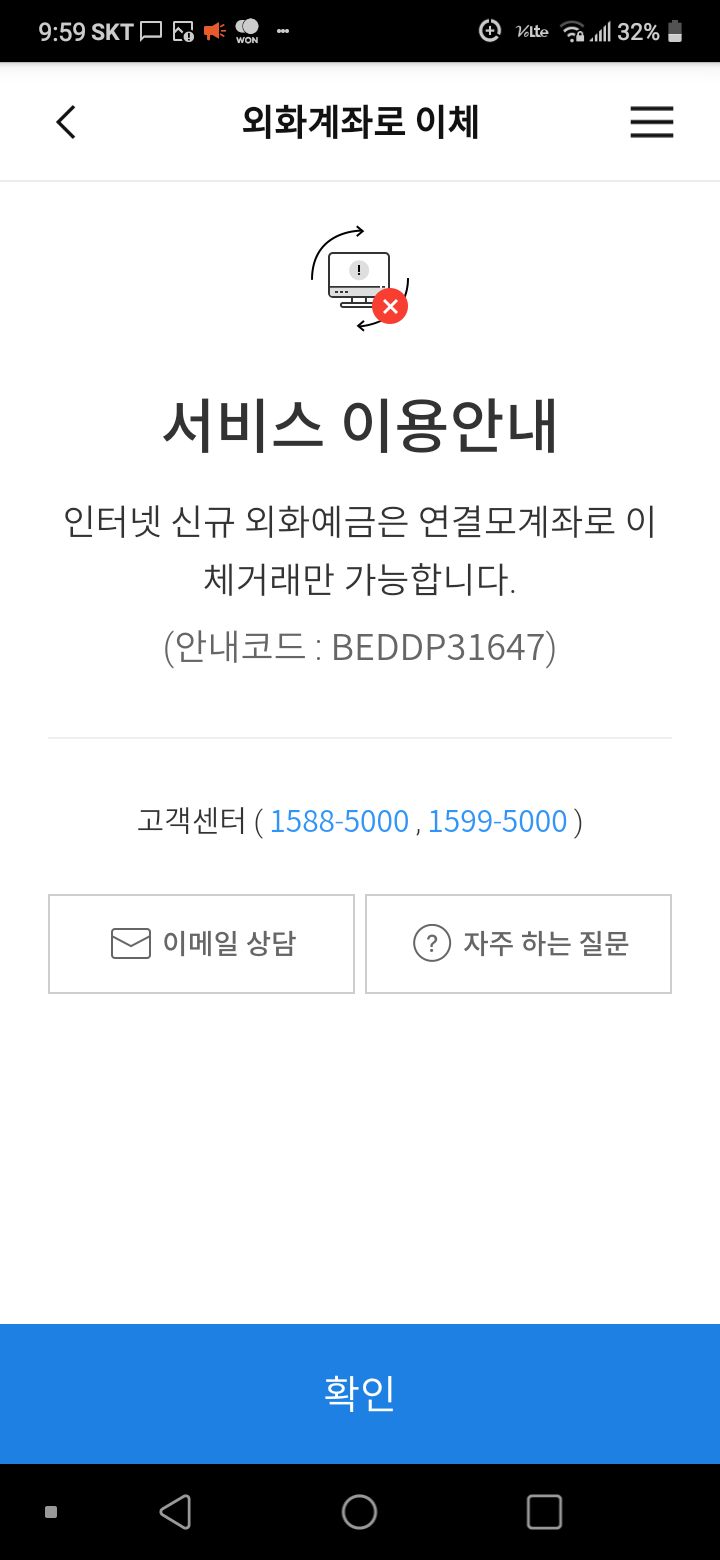 외화계좌로 이체도 안되고, 외화 예금 가입도 안되더라.
