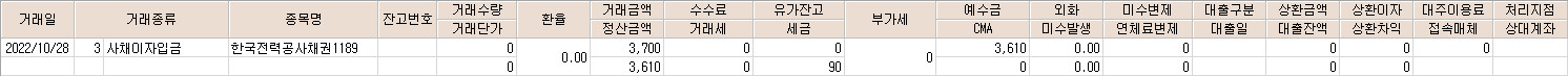 2022년 10월에 지급받은 채권 이자는 4건