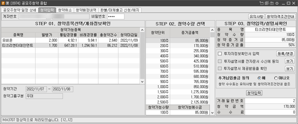 돈이 없어서 100주만 청약 넣었음.