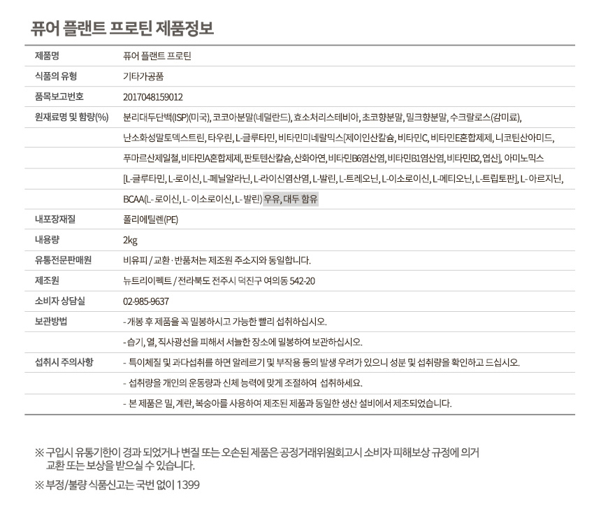 분리대두단백(ISP) 원료가 미국산이다. (중국산 X)