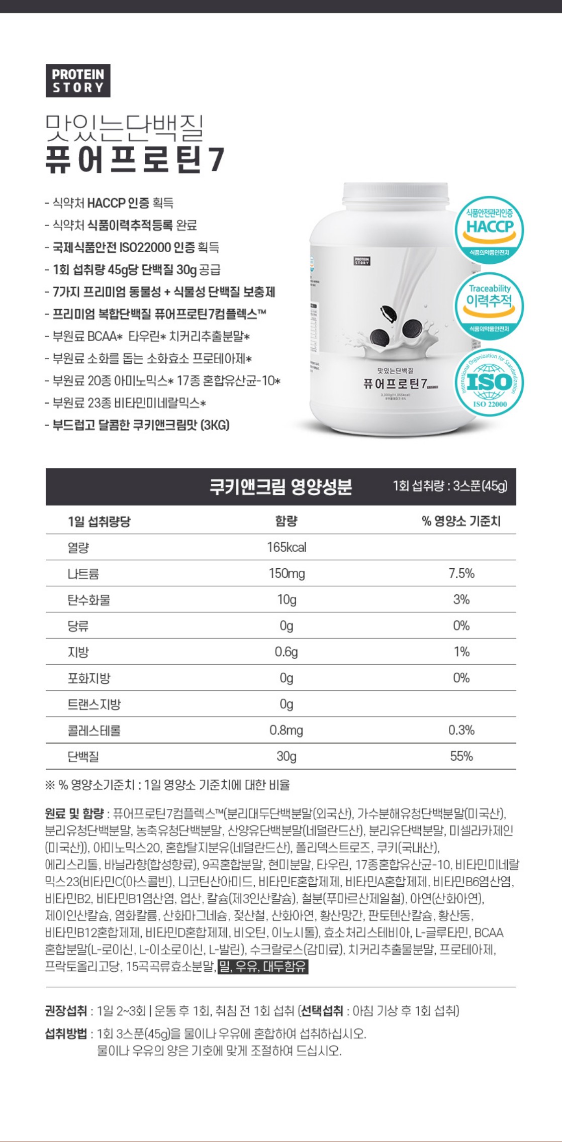 1회 섭취량 30g (약2스푼), 1회 섭취량 기준 하루 3회 섭취