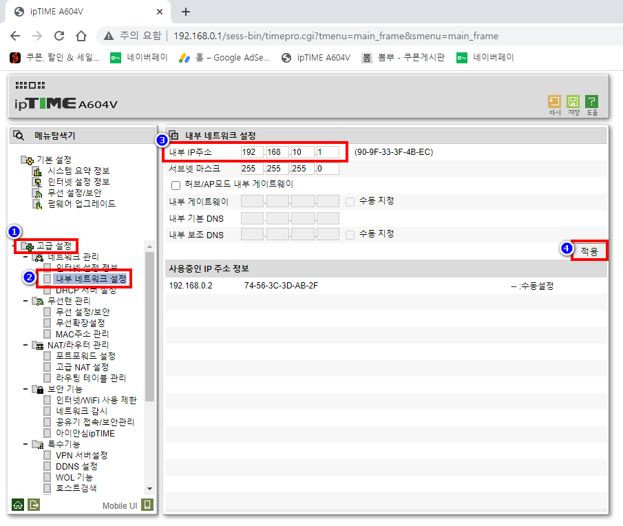 *나는 192.168.1.1 설정을 하니 마지막 단계에서 IP 충돌 오류가 나서 192.168.10.1로 다시 설정하니 잘 되더라.
