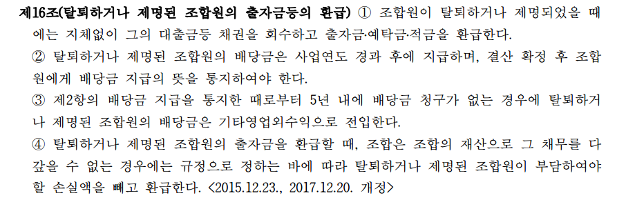 경영상태도 부실하고, 배당도 없어서 조합원 자격이 상실되어도 딱히 아쉬울 건 없어보임.