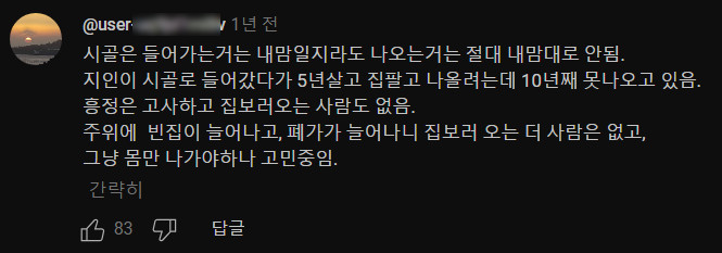 제대로 된 일자리가 있었으면 시골에 젊은 사람들이 많이 살았겠지..