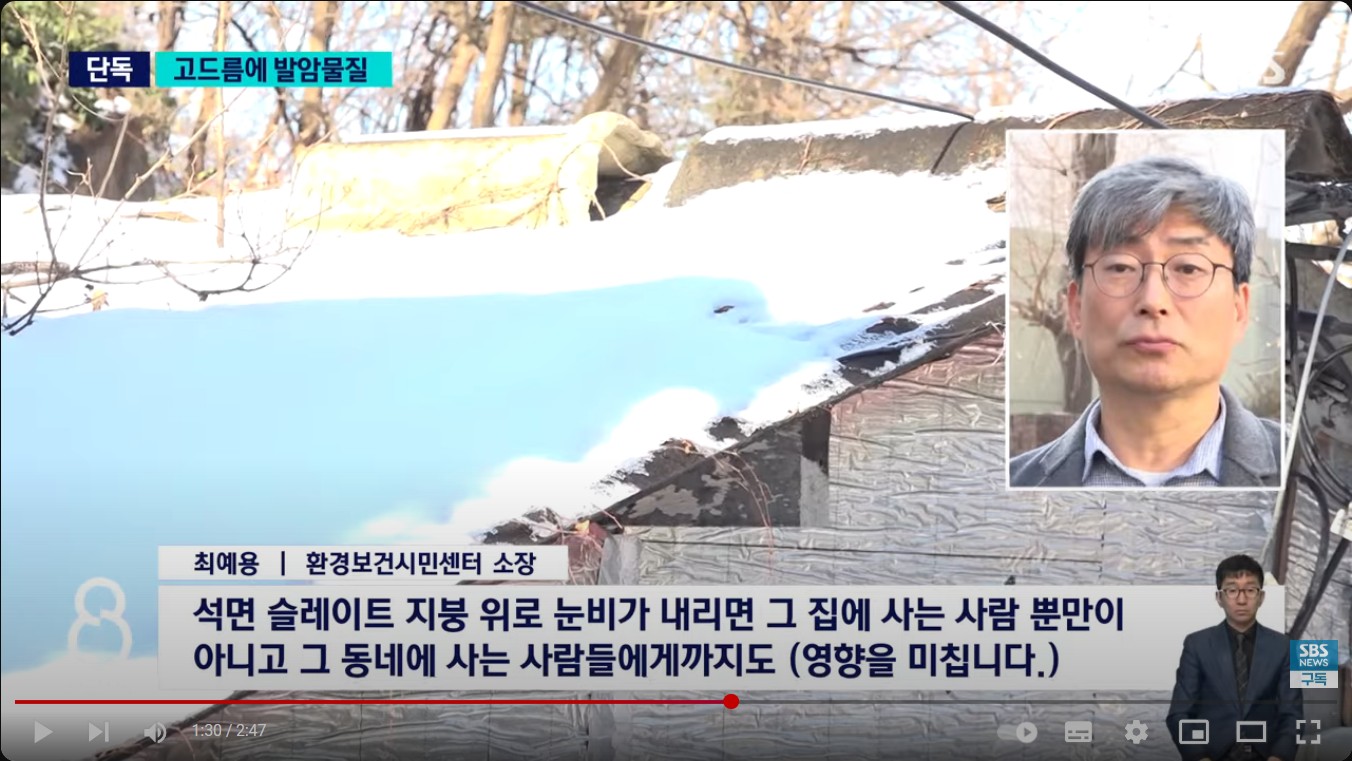 석면 슬레이트 위험, 집단발병 첫 확인 https://www.youtube.com/watch?v=zwWpSscF8I4