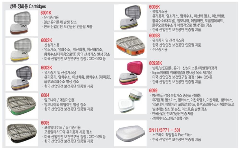 3M 필터와 호환되는 마스크 제품도 있고, 3M 마스크와 호환되는 필터도 다양하게 있음.