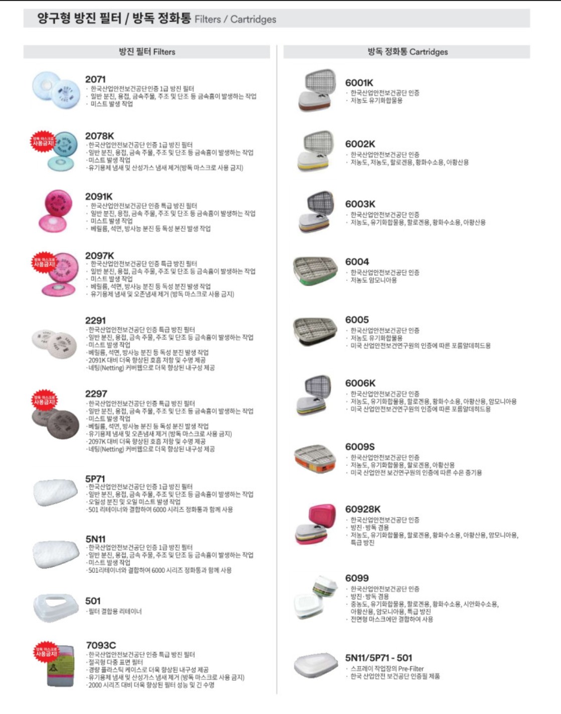 모두 한국산업안전공단 검정필 제품이라서 믿고 사용할 수 있다.