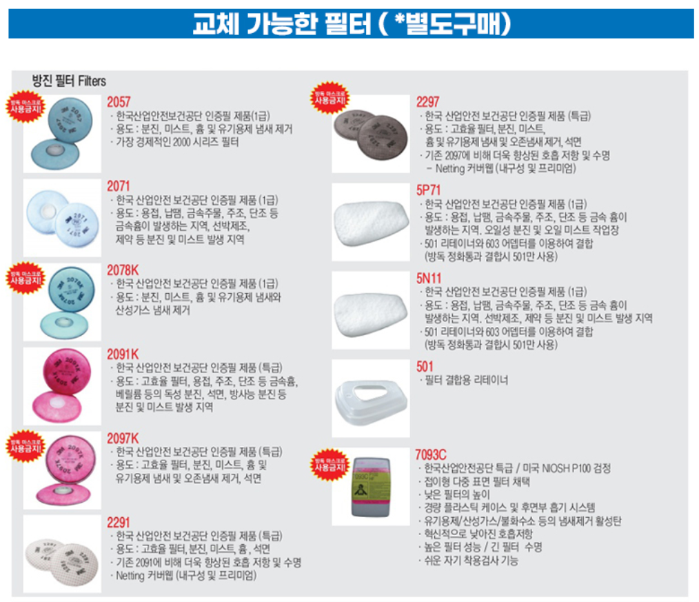 3M 제품을 구매하려고 하다가 좀 더 저렴한 제품이 있는지 찾아봤는데 3M 제품과 호환되는 마스크와 필터 제품들이 있더라.