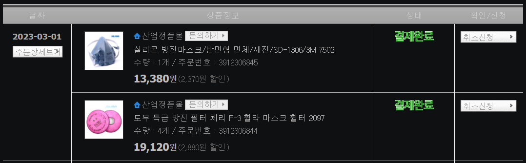 일단은 좀 더 저렴한 2097급 특급 방진필터를 먼저 사용해 봐야겠음.