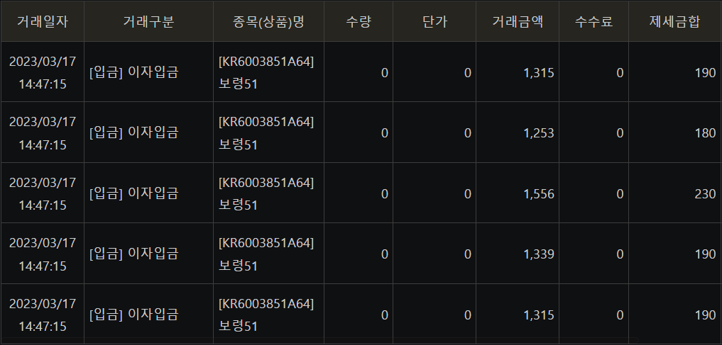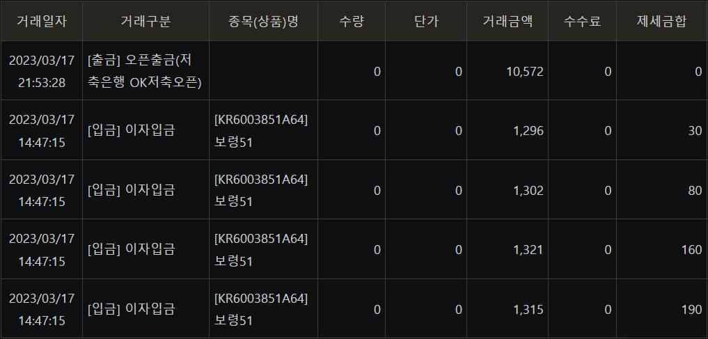| [2023.03.30] 3월 채권 이자 입금내역 메모 (0) | 2023.03.30 |