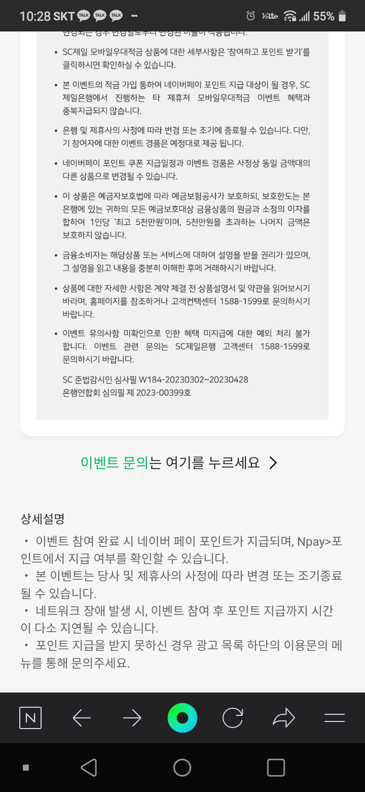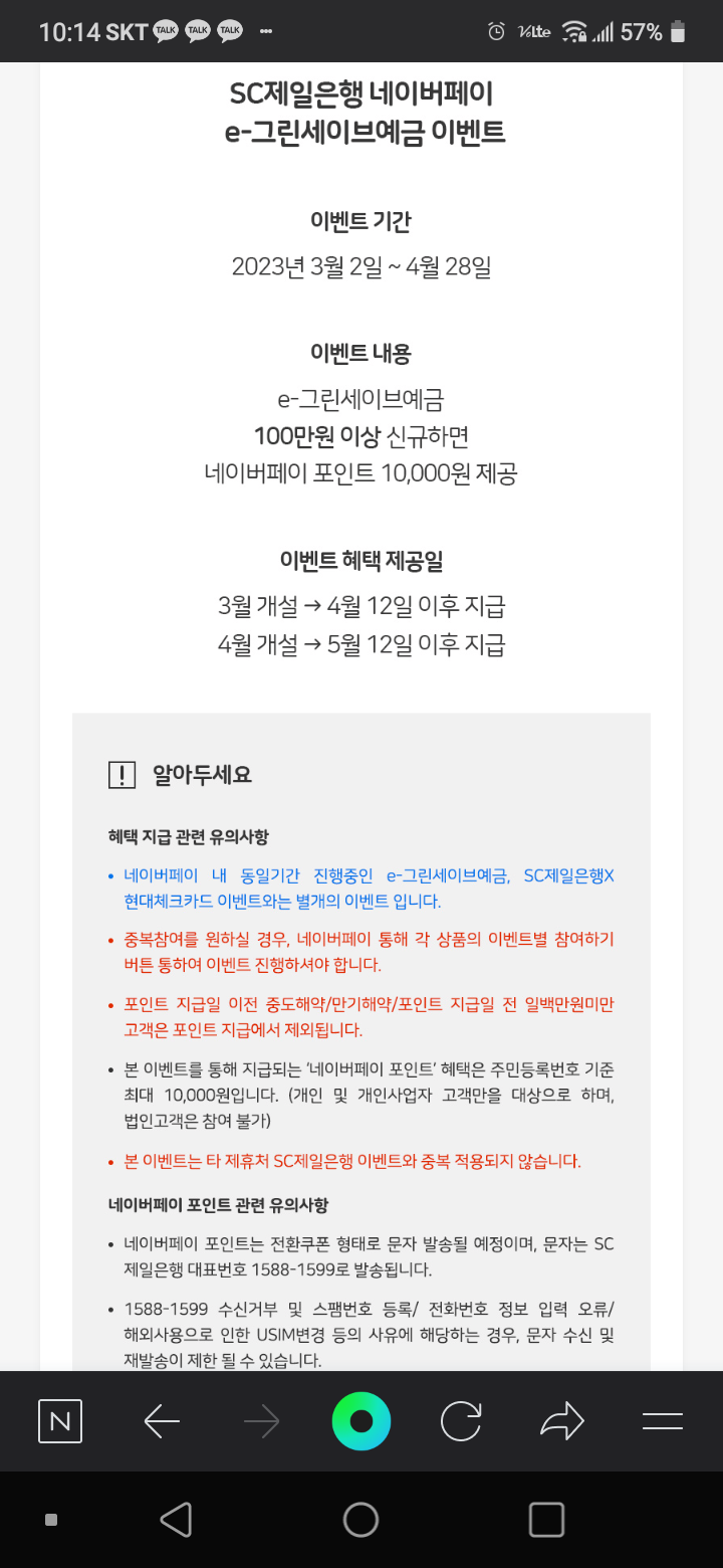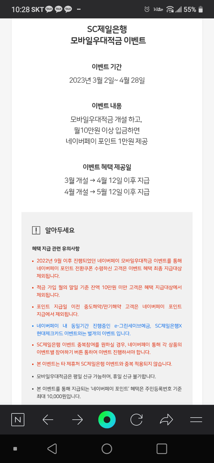 | [2023.04.12] 이벤트 리워드 : 네이버페이 포인트 2만 : SC제일은행 정기예금 & 정기적금 가입 (0) | 2023.04.12 |