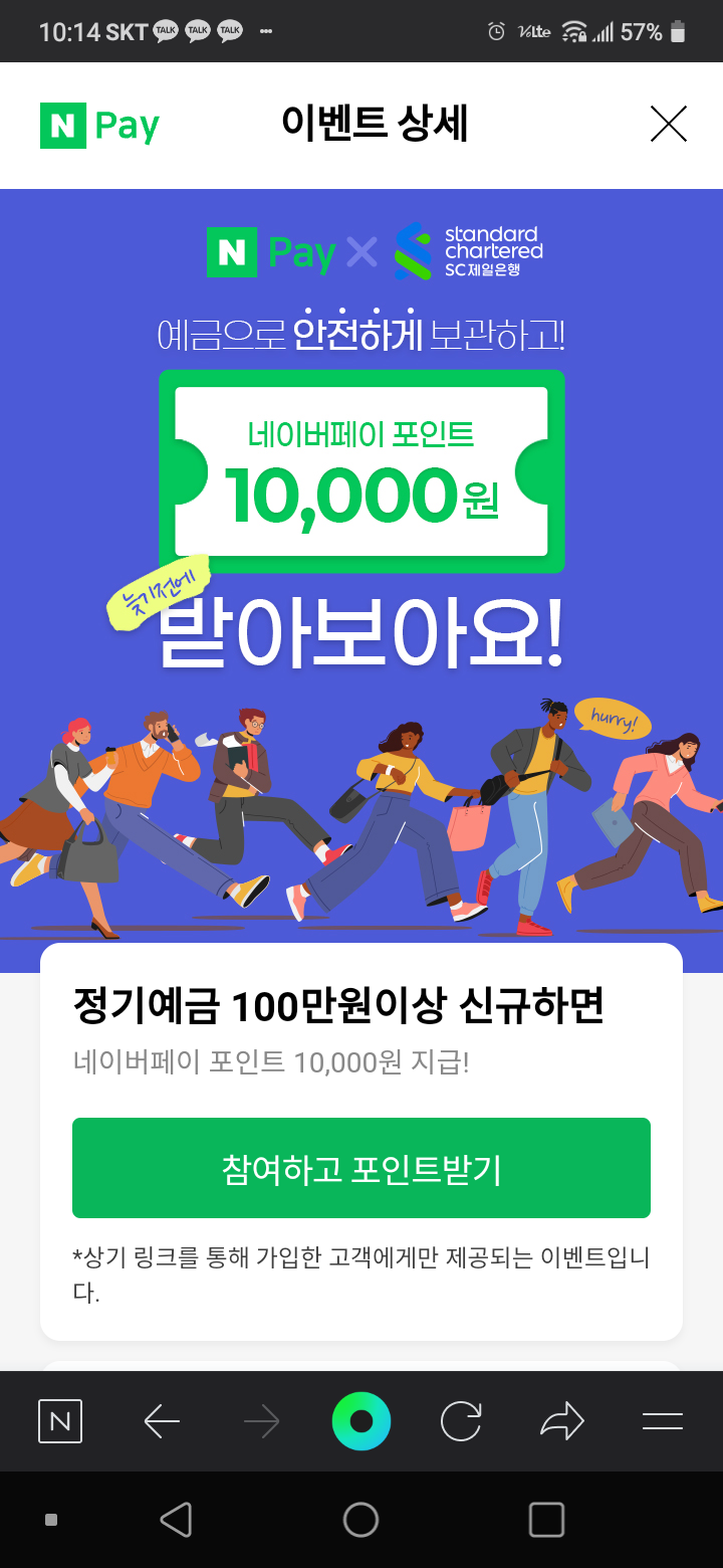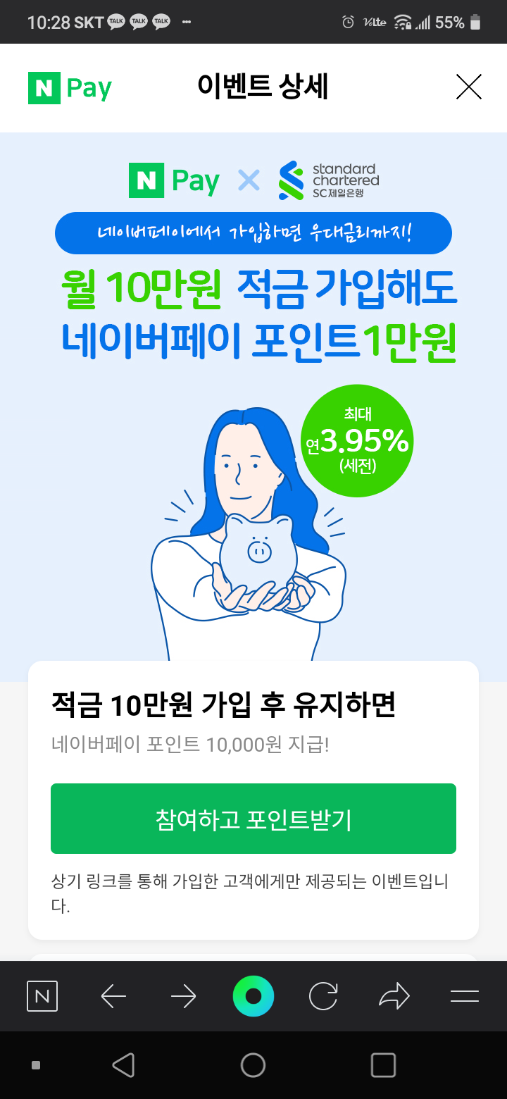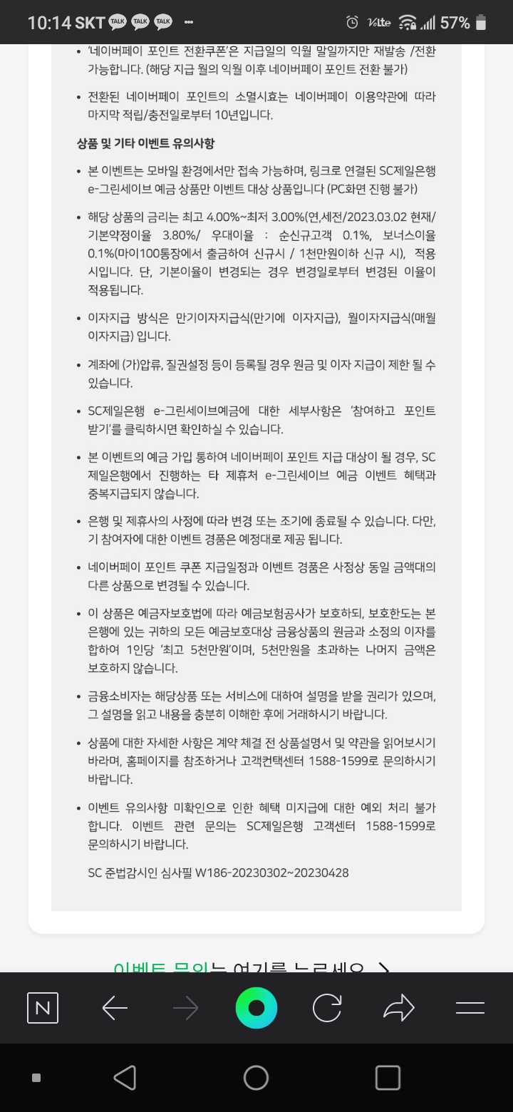 | [2023.04.12] 이벤트 리워드 : 네이버페이 포인트 2만 : SC제일은행 정기예금 & 정기적금 가입 (0) | 2023.04.12 |