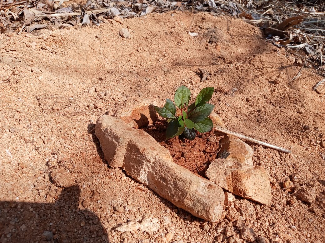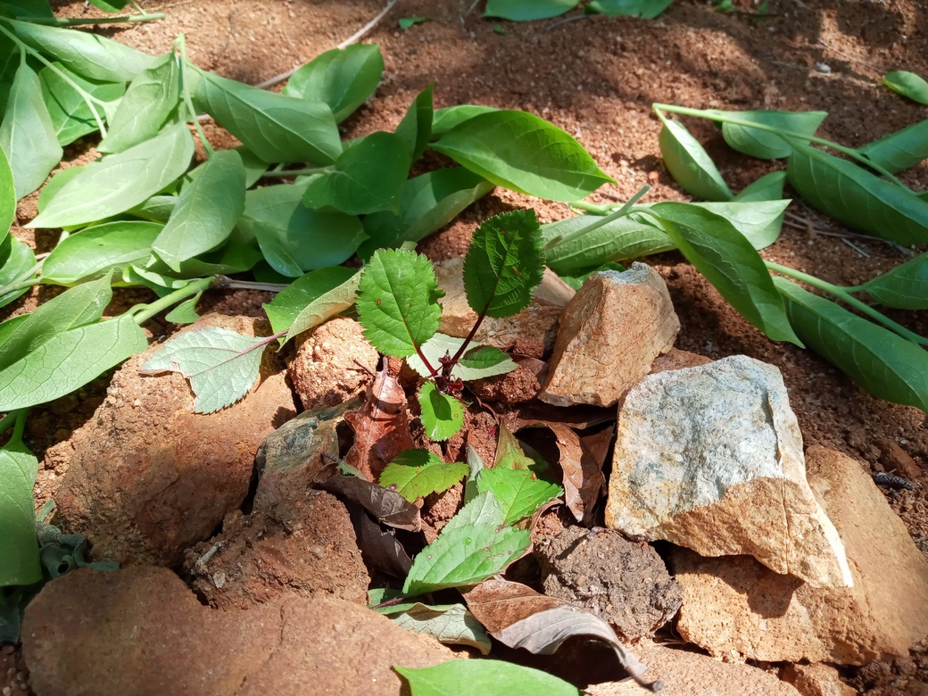 흙덩어리째 빠진 장미는 비닐 봉지로 잘 감싸서 흙이 일그러지지 않게 담고, 호미랑 생수통 하나를 들고 산으로 가서 심었음.