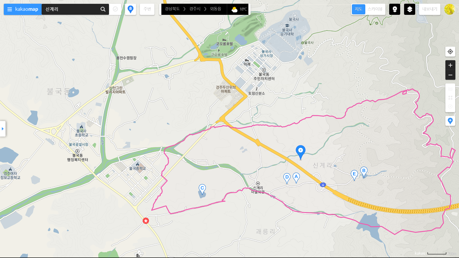 마을버스정류장에서 신계저수지까지 이어지는 `신계상신길`과 감산사로 가는 방향에서도 쉽게 볼 수 있다.