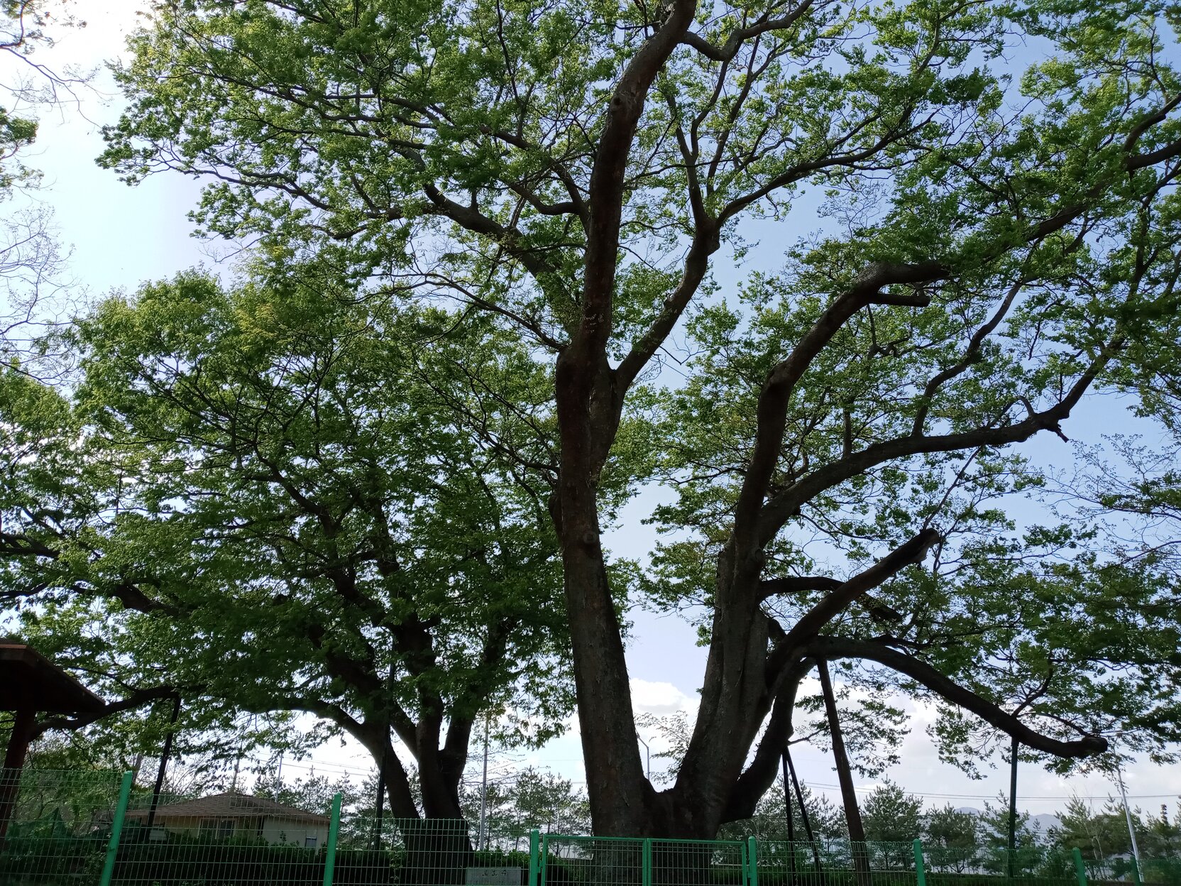 마을버스정류장 길을 따라서 벚나무가 있음.