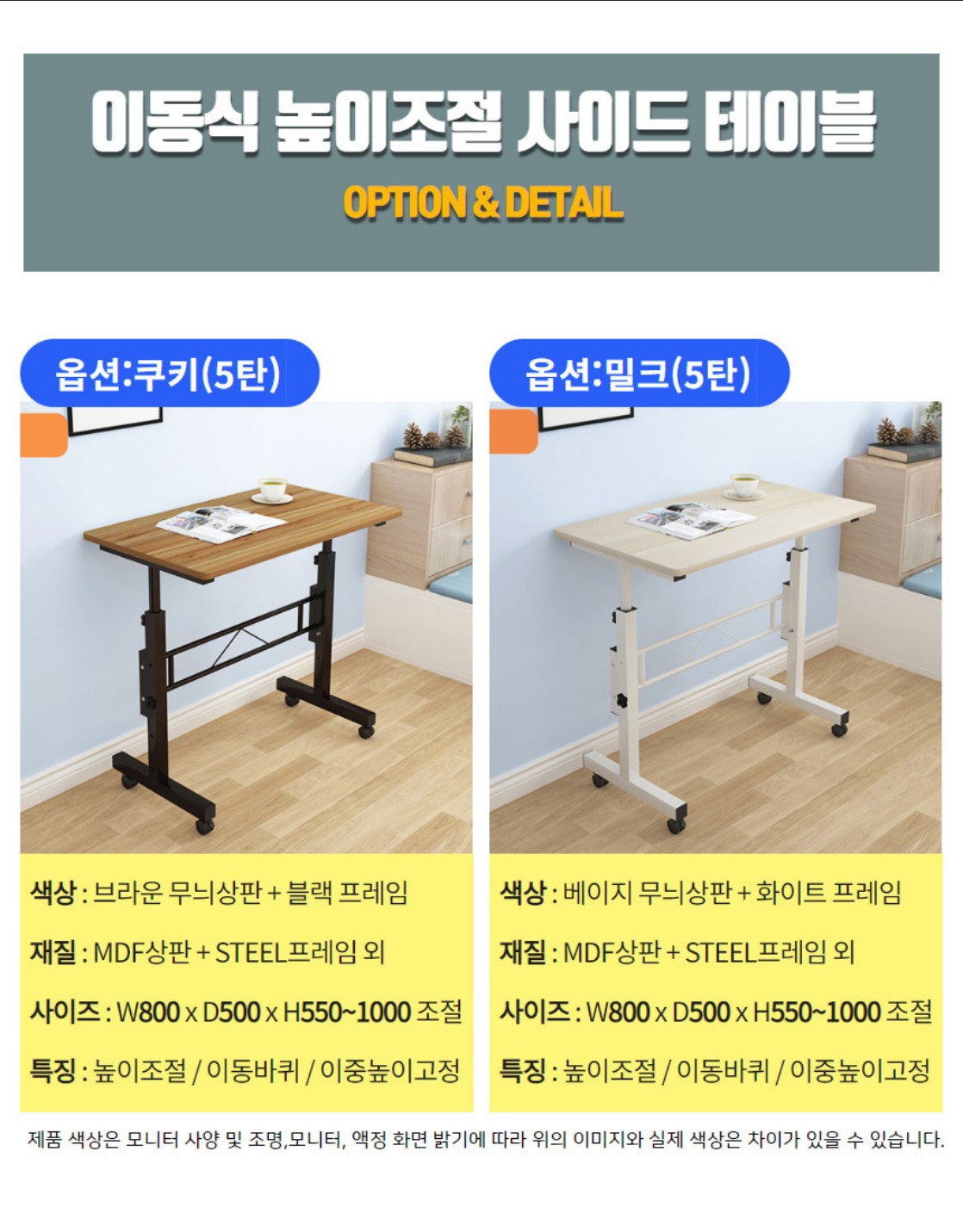 이동식 높이조절 스탠딩 책상 1인용 소파 컴퓨터 바퀴달린 테이블