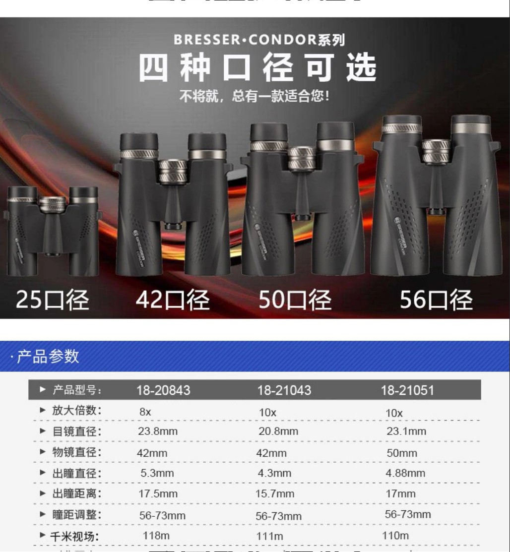 브레서 쌍안경 콘도르 콘도르 시리즈, 고화질 고출력 질소 충전 방수 저조도 야간 투시경 쌍안경