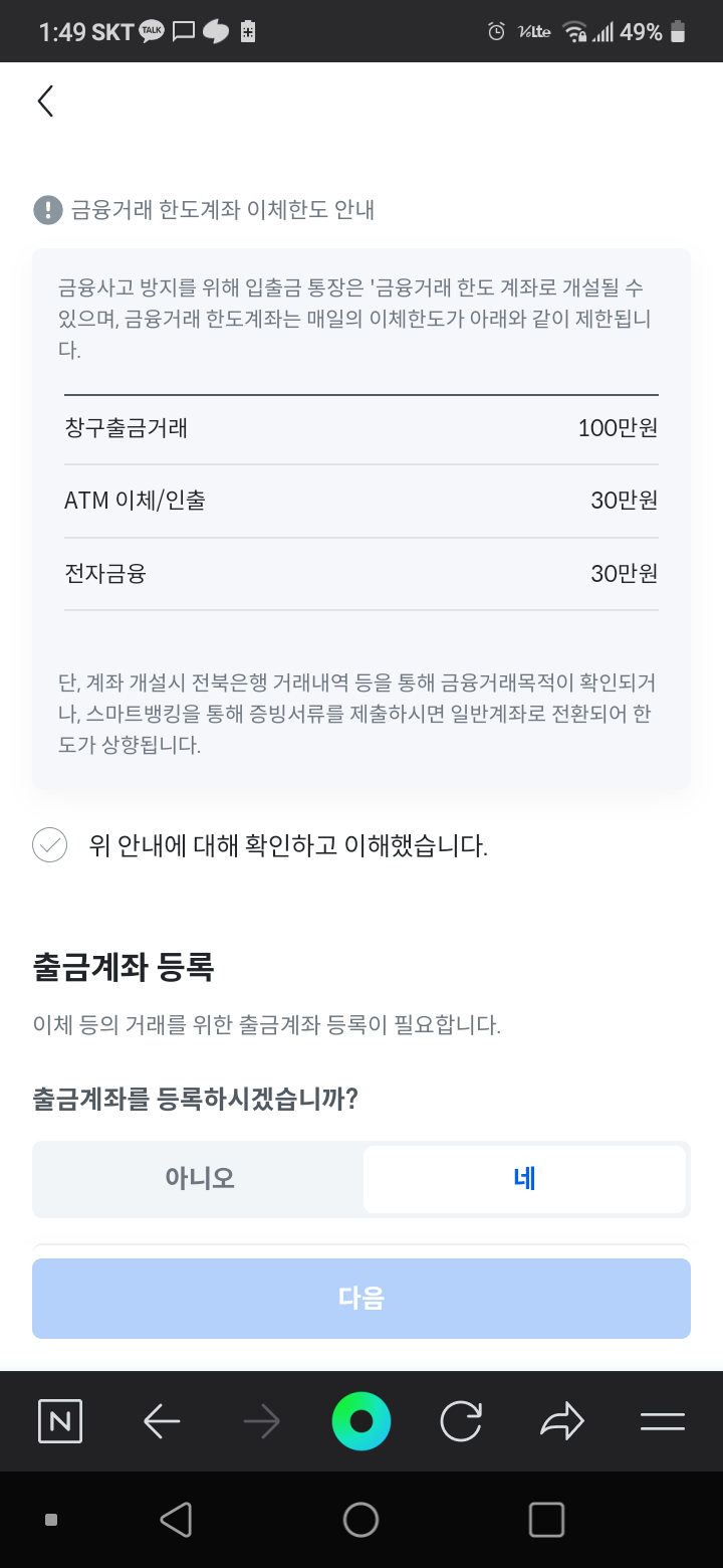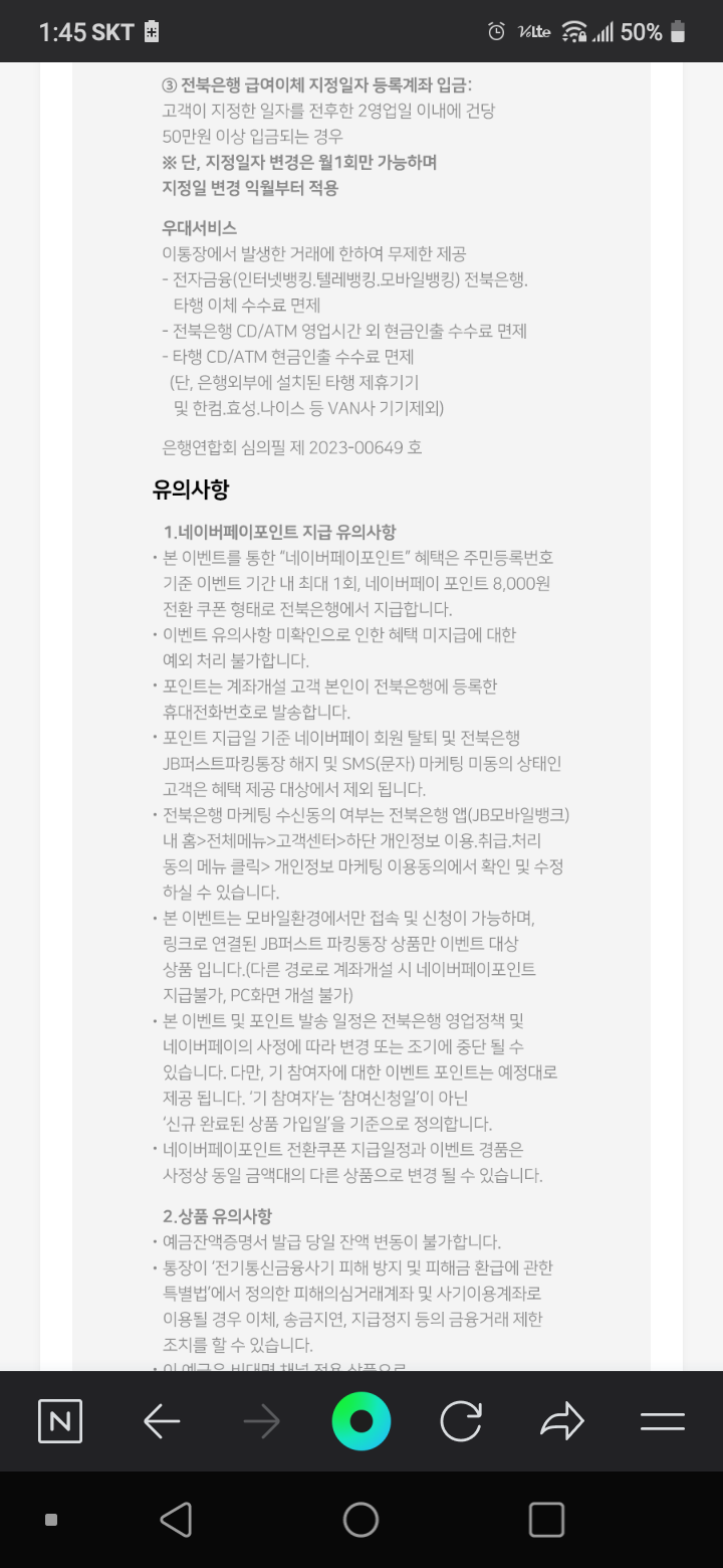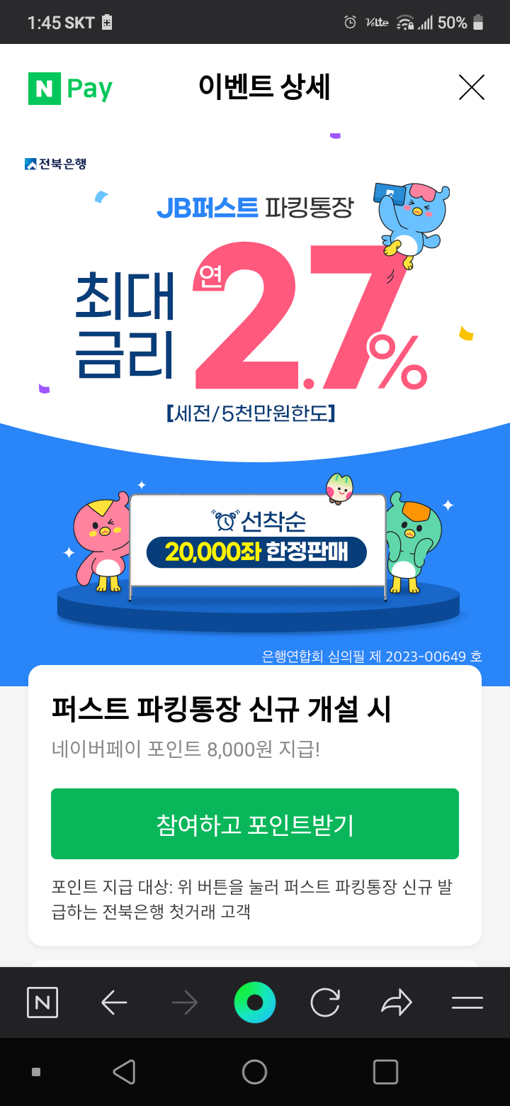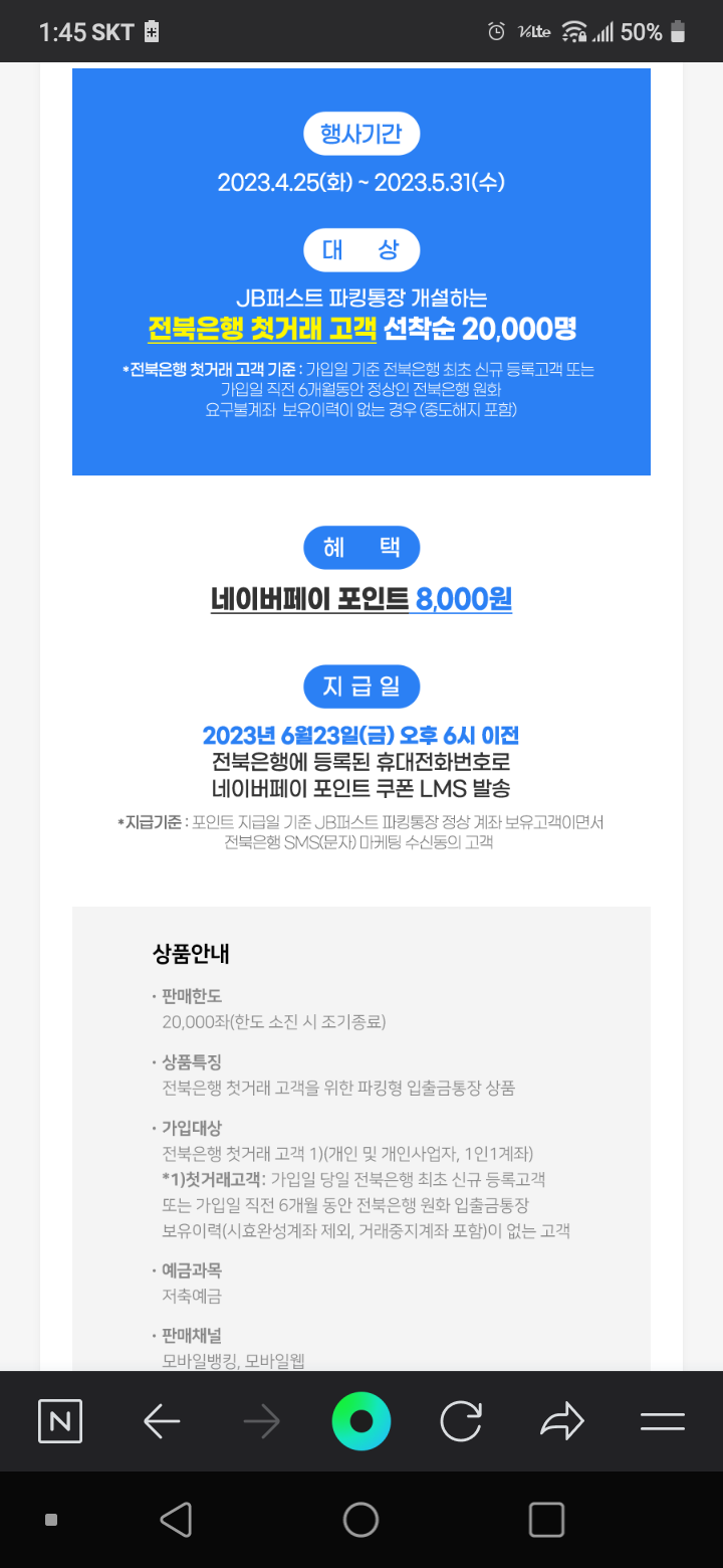 네이버페이 >> 전북은행 JB퍼스트 파킹통장 개설