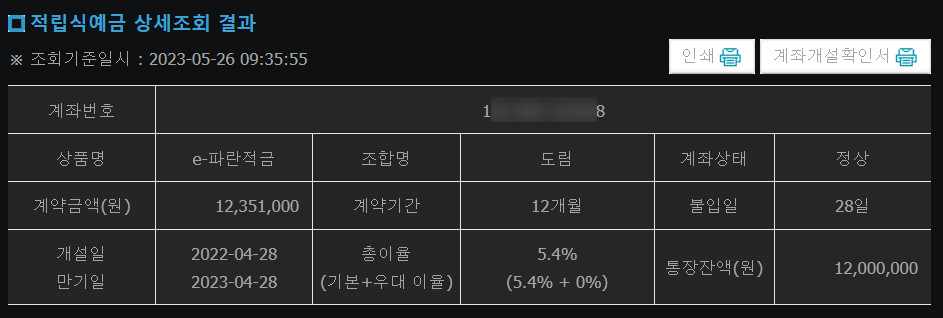 지난 달에 만기였었던 정기적금 상품인데 1개월 정도 미뤘다가 오늘에서야 해지를 했다.