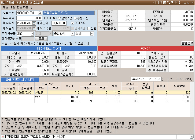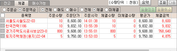 `서울도시철도22-03, 한국전력1186, 토지주택채권(용지)22-04`는 수량이 10개라 생략한다.