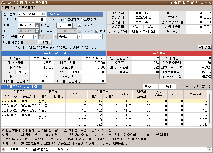 | [2023.06.01] 장내채권 매매 : 한국전력1258 매수, 메리츠캐피탈175-4 일부매도 (0) | 2023.06.01 |