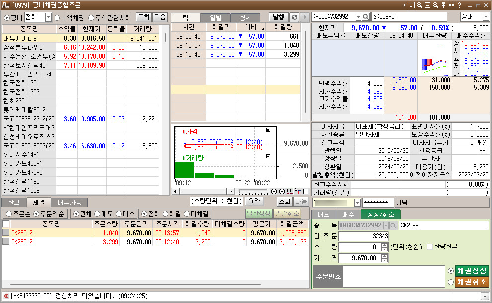| [2023.06.01] 장내채권 매매 : 한국전력1258 매수, 메리츠캐피탈175-4 일부매도 (0) | 2023.06.01 |