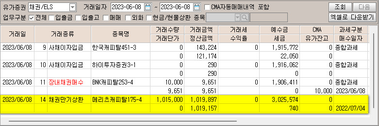[2023.06.01] 장내채권 매매 : 한국전력1258 매수, 메리츠캐피탈175-4 일부매도