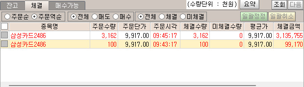 매도물량으로 1만개가 나왔지만 돈이 많지 않아서 3,262개만 매수했음.