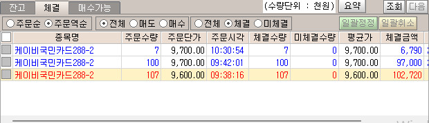 매수단가 9,600원 : 금액 102,720원 : 예상수수료 26원