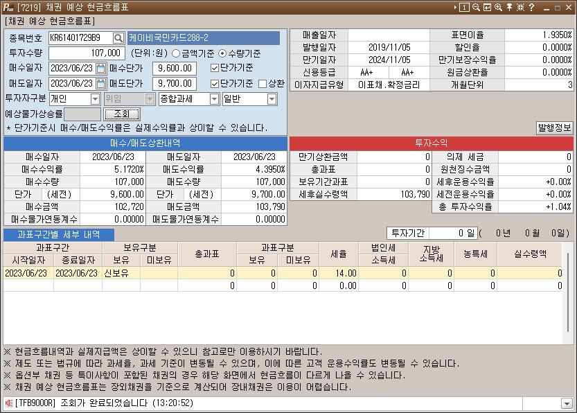 | [2023.06.19] 장내채권 매수 : 삼성바이오로직스7-1(AA-, 90만원, 세후 4.46%), 신한은행26-09-이-1A (AAA, 195만원, 세후 4.67%) (0) | 2023.06.19 |