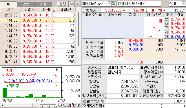 장내채권 시세를 둘러보다가 만기는 92일 남았고, 수익률도 파킹통장 보다 좋아보이는 채권을 발견했음.