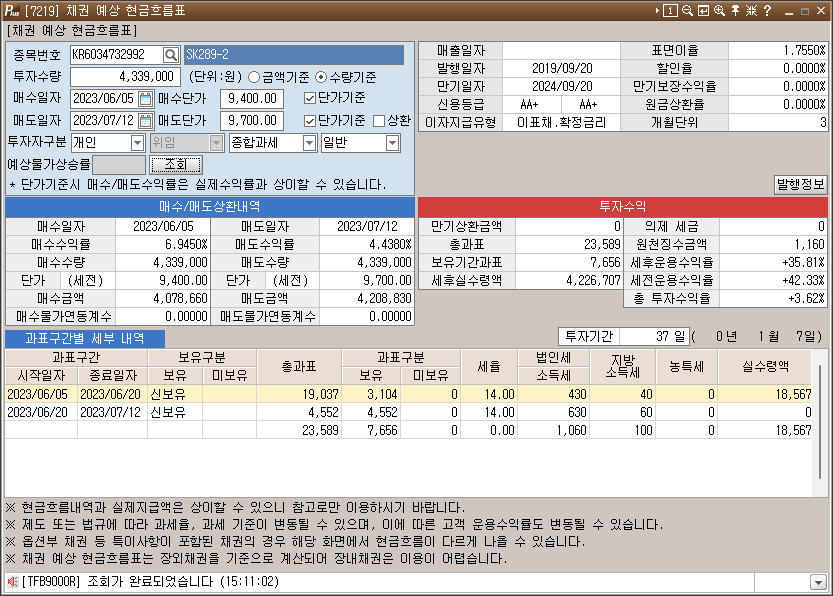 `SK289-2` 현금흐름표만 확인하고, 나머지 잔챙이들은 대충 매도체결이 있었다는 정도만 알아두자.. 귀찮;;