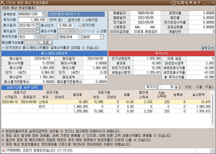 [2023.06.19] 장내채권 매수 : 신한은행26-09-이-1A (AAA, 195만원, 세후 4.67%)