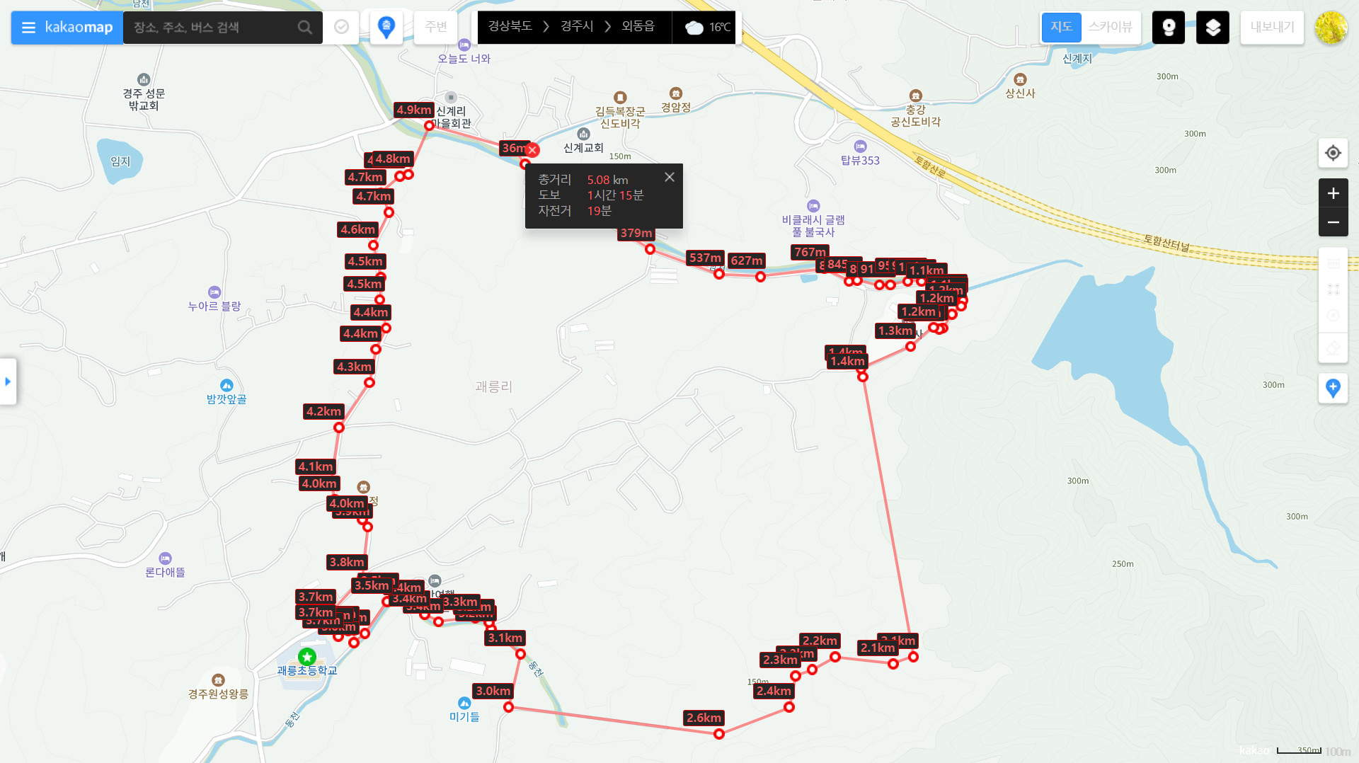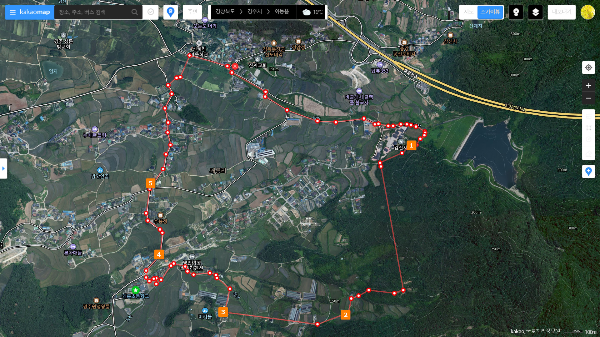1~5번 표시는 가다가 앉아서 쉬었던 표시임.