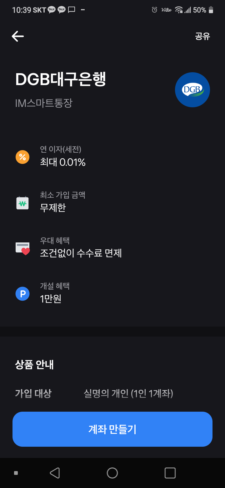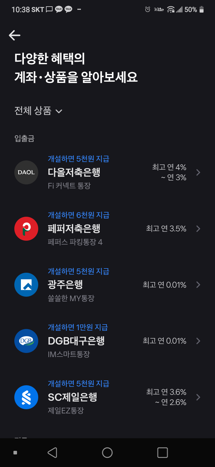 2. 우측하단 `전체` >> 계좌 - 입출금*예적금*주식 계좌 개설